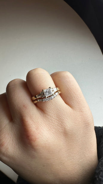 Natural Princess Cut Engagement and Wedding Ring Set