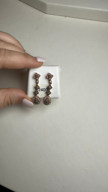 Rose Gold Black and White Diamond Dangle Earrings